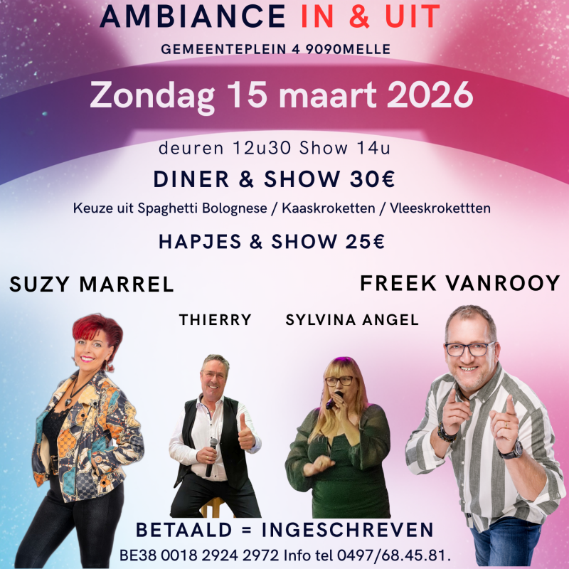 | 15/03/2026 | In en Uit | Melle | zie affiche |