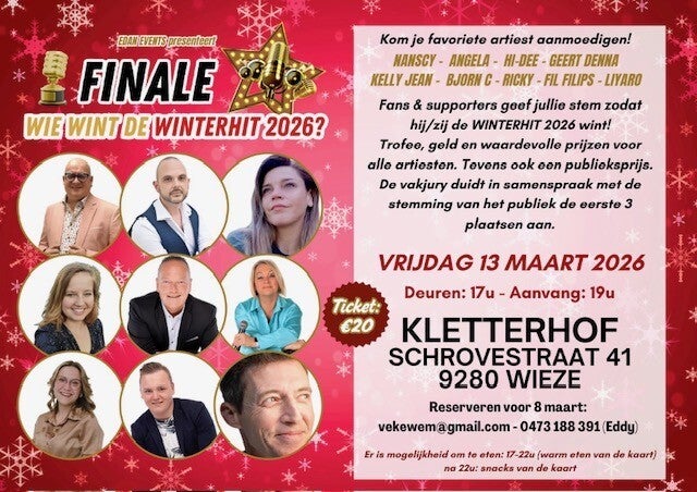 | 13/03/2026 | Kletterhof finale Winterhit | Wieze | zie affiche |